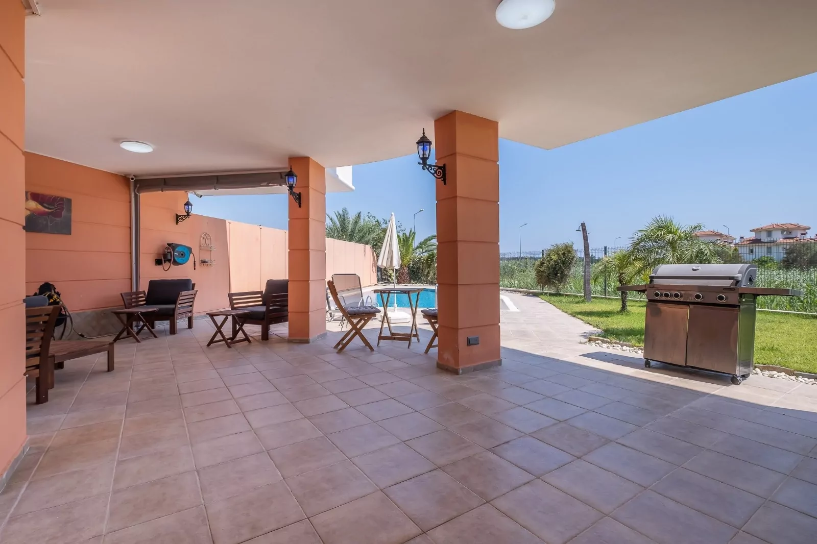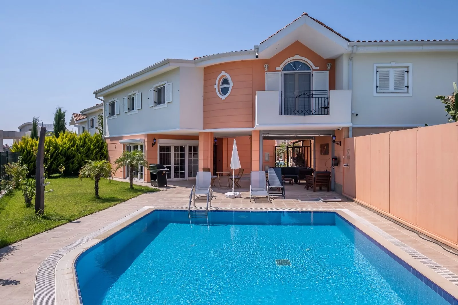 Сдаётся в аренду 5-комнатная вилла в Белеке. Вся необходимая мебель и техника в наличии. Во дворе — большой бассейн с зоной для отдыха и барбекю.