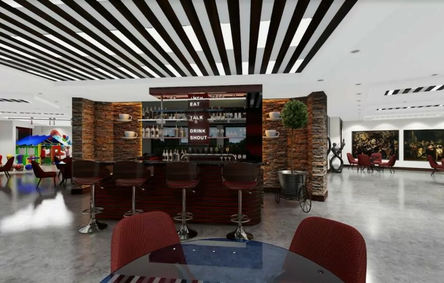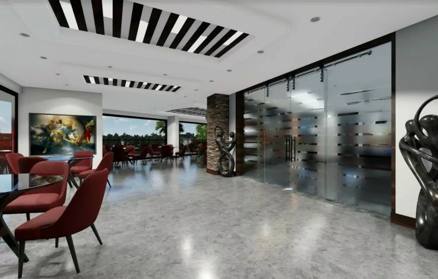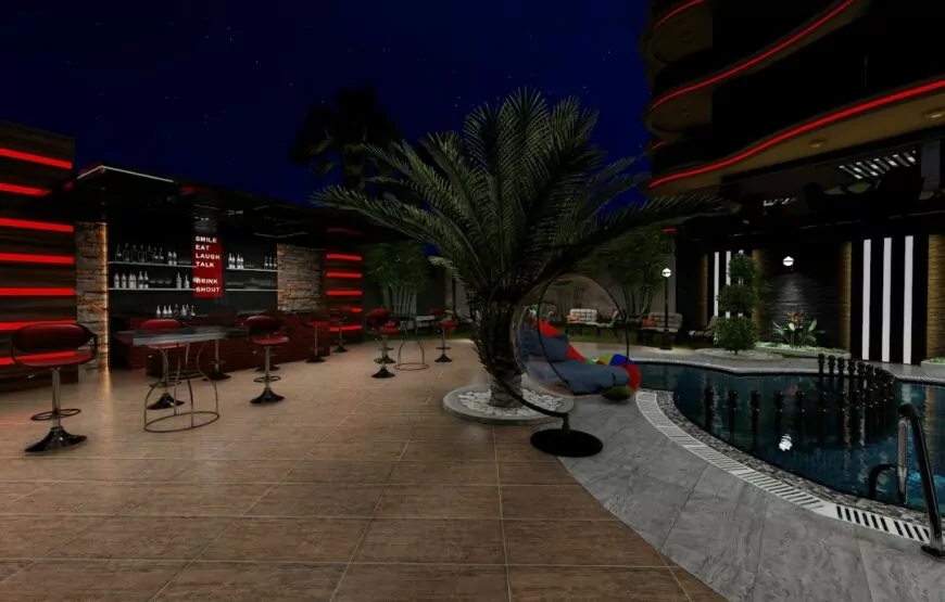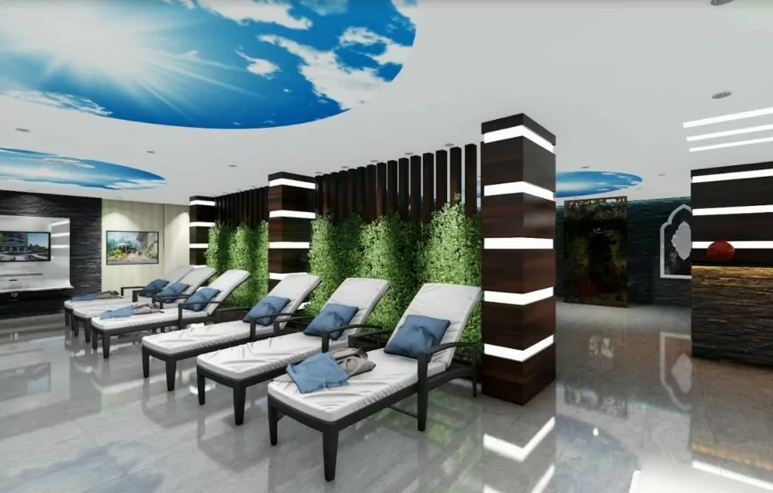 Внутри комплекса: ресепшен, зоны для отдыха и встреч с мягкими удобными диванами. Ресторан, крытый бассейн с тёплой водой, сауна, парная, турецкий хаммам, джакузи, детская игровая комната с тёплым полом, бильярдная, фитнес-центр, бассейн на крыше 12-ти этажного дома с панорамным видом на море, крепость Алании и горы.