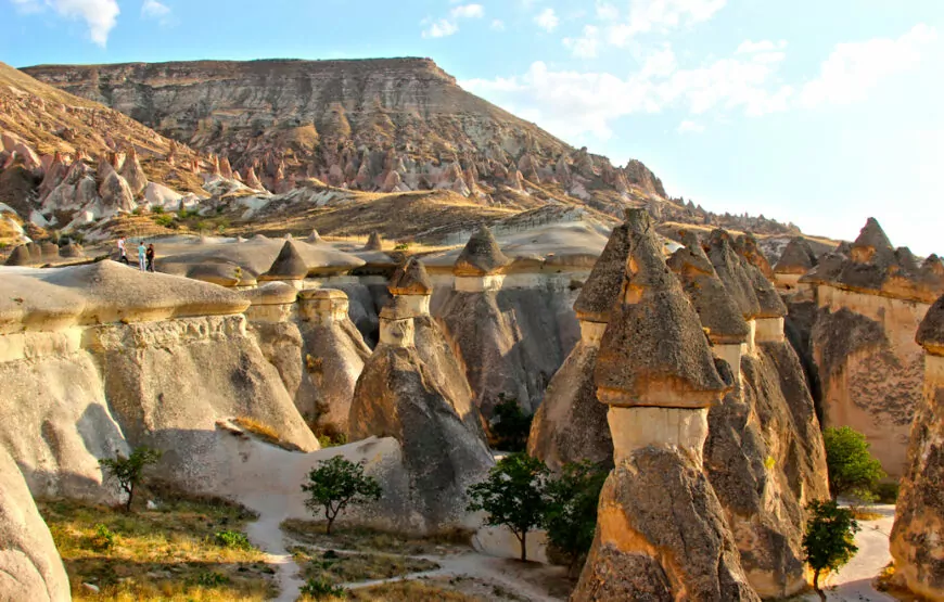 Необычный пейзаж с причудливыми очертаниями, каньонами, каменными грибоподобными столбами создают ощущение присутствия на другой планете. Пещерный город с древними домами, церквями и монастырями, созданный первыми христианами, внесён в список Всемирного наследия ЮНЕСКО.